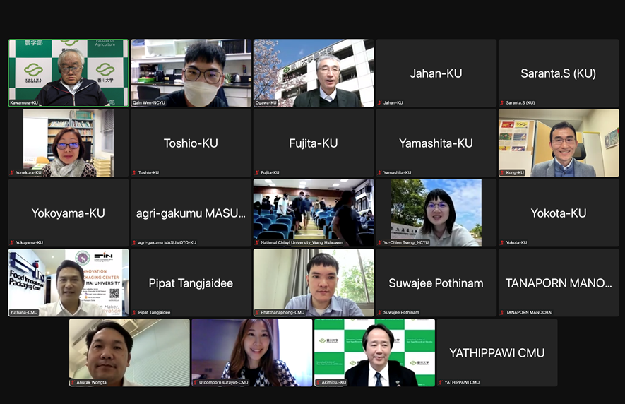 11月15日15:00からTrilateral Symposium on SDGs – 2022 Online Research Seminar, Sustainability & Food Session を開催しました。これは来年8月29日-31日に開催が予定されている第二回Trilateral Symposium on SDGsのプレシンポジウムとしてオンラインで開催されました。チャンマイ大学、国立嘉義大学と香川大学の若手研究者合計4名が研究発表を行い、活発な質疑応答がなされました。参加者は3大学で約90名で、オンラインシンポジウムでは、気軽に誰でもどこでも参加できる利便性があることが実証されました。今回のプレシンポジウムを切っ掛けに3大学間の共同研究や交流の活性化が期待されます。