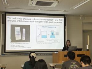 山口教授(環境生態機能学領域)および栁田准教授(生物分子化学領域)の指導のもと、各研究室にて実験活動が行われました。週1回の学術セッションも開催され、以下の内容が含まれました: