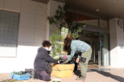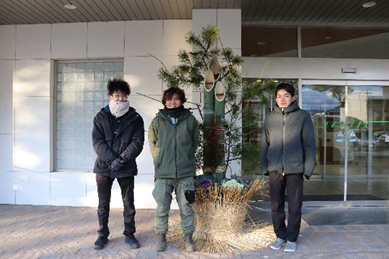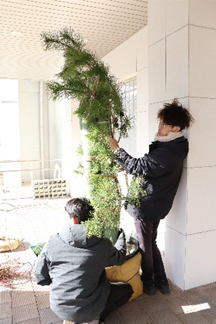 本日、農学部正面玄関前に、立派な門松が設置されました。