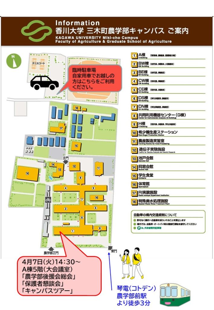 農学部保護者懇談会(後援会総会に引き続き開催 予定15:00~)