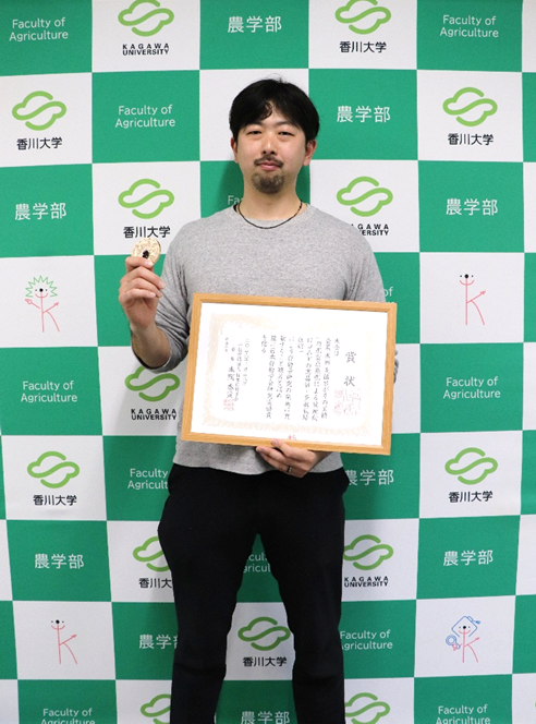受賞内容:国産コムギは外国産のコムギに比べて単位面積当たりの生産量 (収量) や品質が不安定であるため,栽培条件に関係なく収量と品質を安定的に高められる栽培技術が求められています.水田教員はこれまで山口県,熊本県および香川県で様々なコムギ品種を用いて高品質と多収の両立を目的とした栽培試験を行い,13報にわたる筆頭著者論文で「窒素肥料の追肥時期や追肥量の改良による高品質・多収栽培技術の開発」と「茎立ち期中の受光量に着目した耐倒伏性向上技術の開発」についての研究を進めました.これらの成果は研究内容に加えて,実際に国内数県のコムギ栽培技術に取り入れられているその実用性も含めて極めて優れたものであると評価され,日本作物学会研究奨励賞の受賞にいたりました