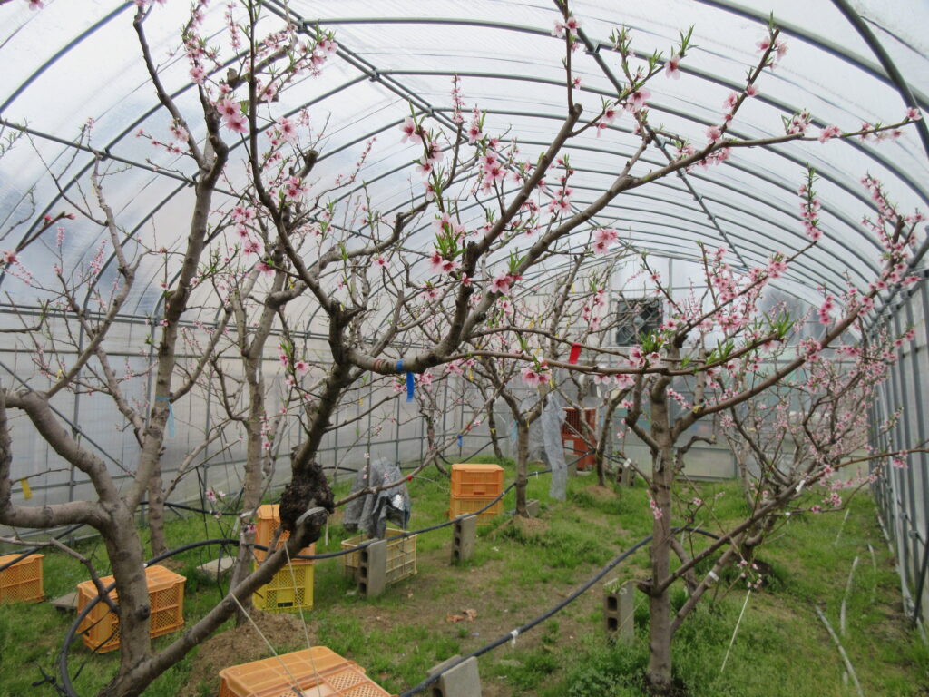 香川大学農学部(果樹園芸学研究室)では、冬季に芽が休眠から覚めるのに必要な低温要求量が極めて少ない亜熱帯起源のモモと食味品質が優れる日本のモモを相互に掛け合わせ、得られた実生から優良個体を選抜し、2014年に白肉品種の「KU-PP1」を、2016年に黄肉品種の「KU-PP2」を種苗登録しました。