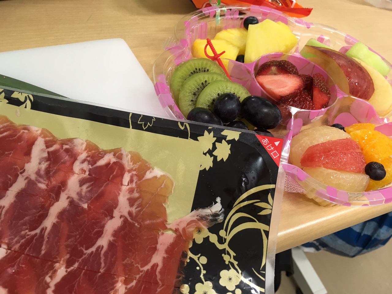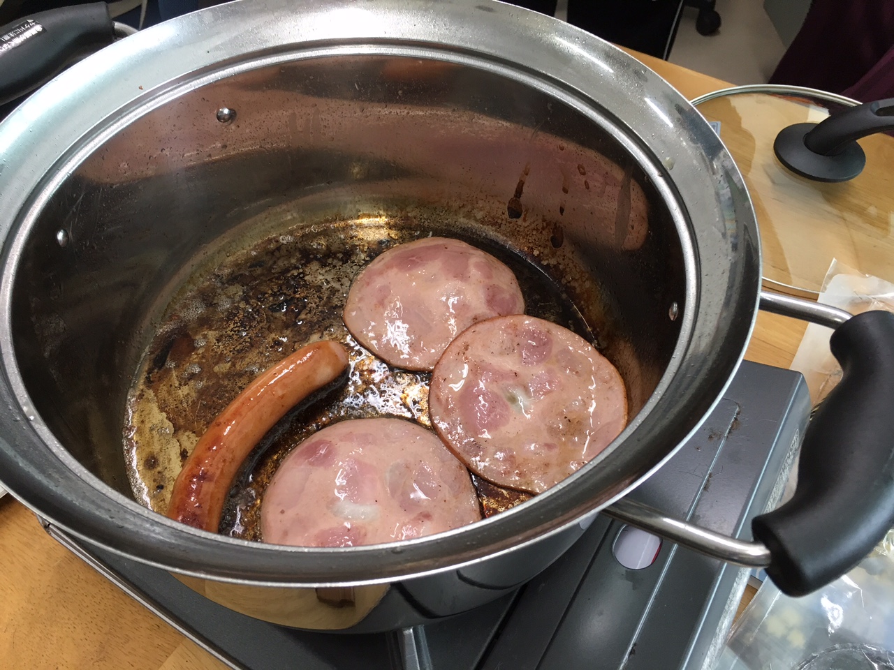 新年ハムの会 投稿日: 2017年1月11日2025年12月11日 投稿者: RCY 昨年度の卒業生の神野さんからいただいたお歳暮のハム・ソーセージ・ベーコン・生ハムを研究室の皆でいただきました.フライパンがないので鍋で焼きましたが,それでも大変おいしかったです.