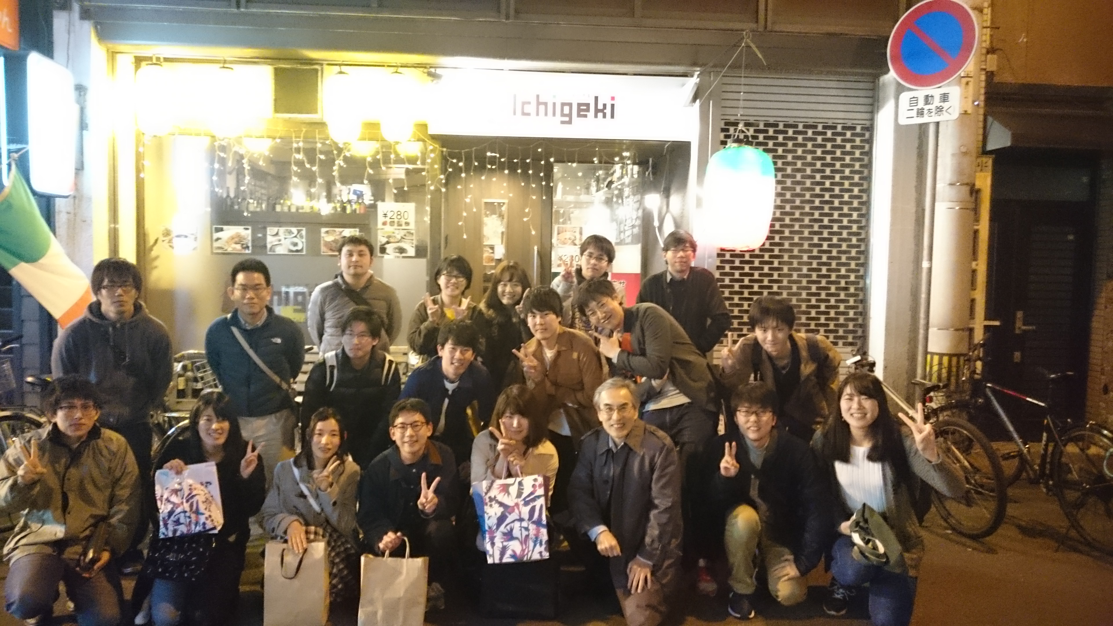 追いコン2018 投稿日: 2018年3月26日2025年12月11日 投稿者: RCY 3月23日 (金),修了式・卒業式の前日に高松市内で川浪研究室と合同での追いコンが行われました.今年は合わせて修士3名,学部3名を追い出しました.おめでとうございます. 今年も初めてのお店でした.デザートがちょっと寂しかったですが,料理はおいしくいただきました.