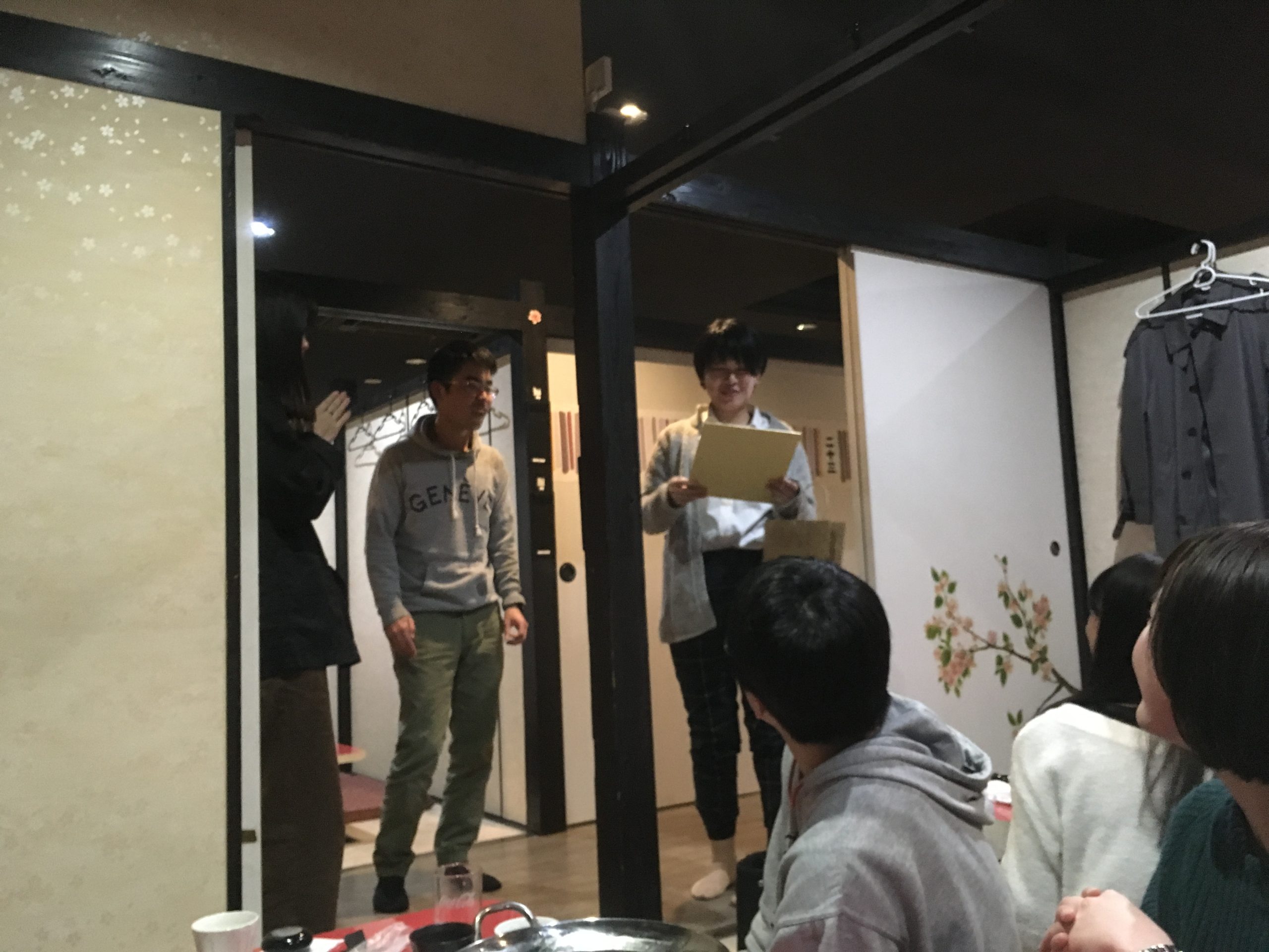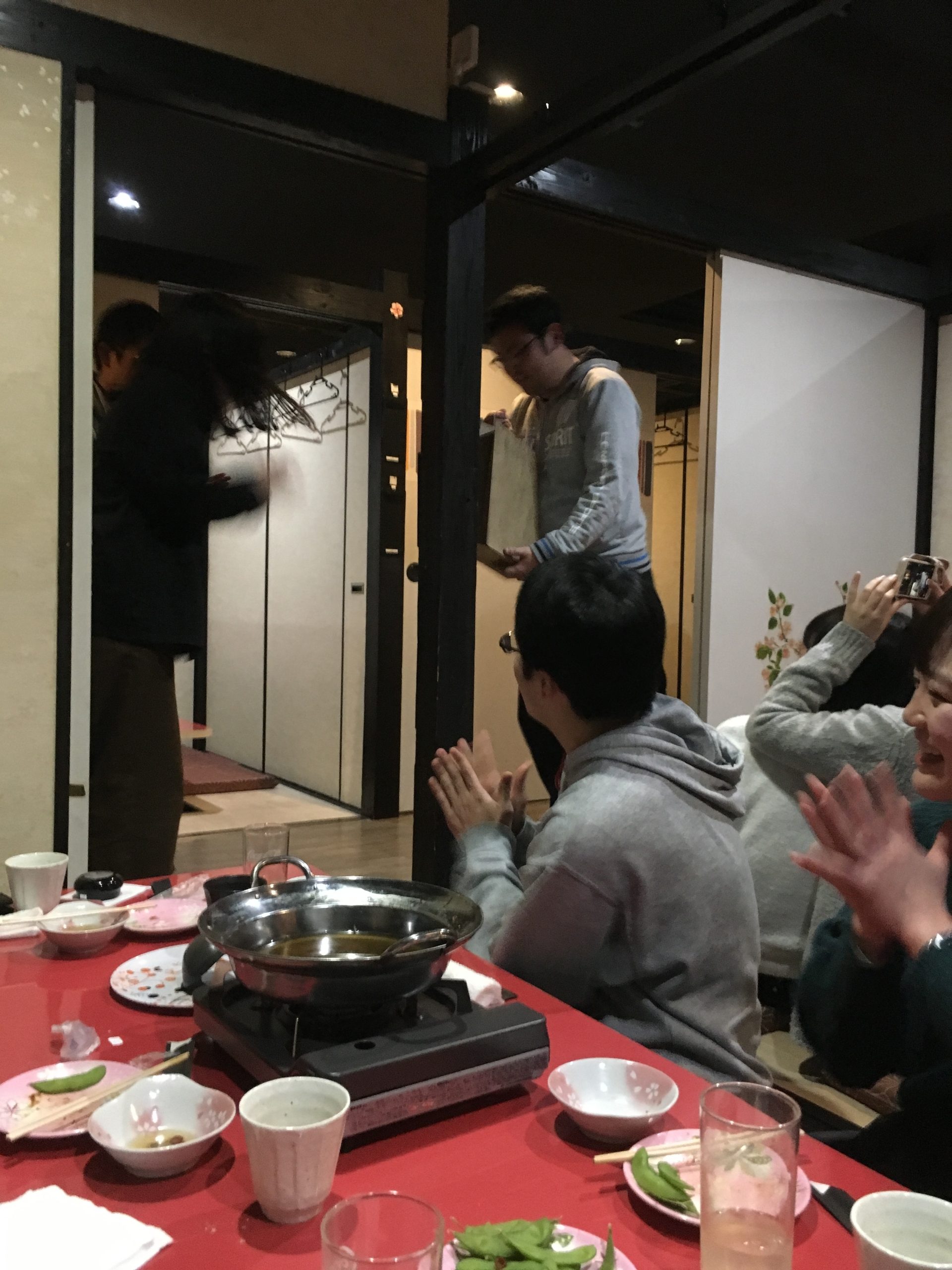 追いコン2019 投稿日: 2019年3月12日2025年12月11日 投稿者: RCY 3月8日 (金),例年より早目に高松市内で川浪研究室と合同での追いコンが行われました.今年は合わせて博士1名,修士3名,学部2名を追い出しました.おめでとうございます. 今年も初めてのお店でした.カセットコンロを点けるのに苦労しました. IMG_3098IMG_3099IMG_3100