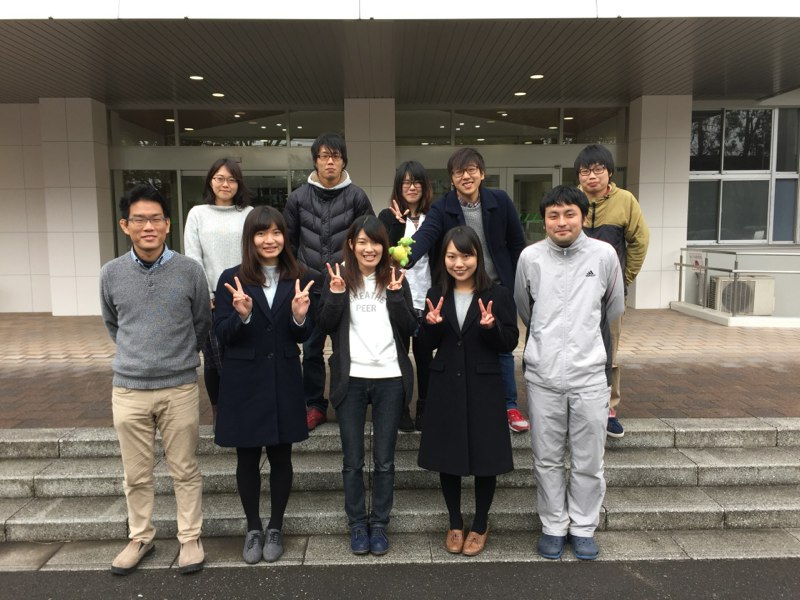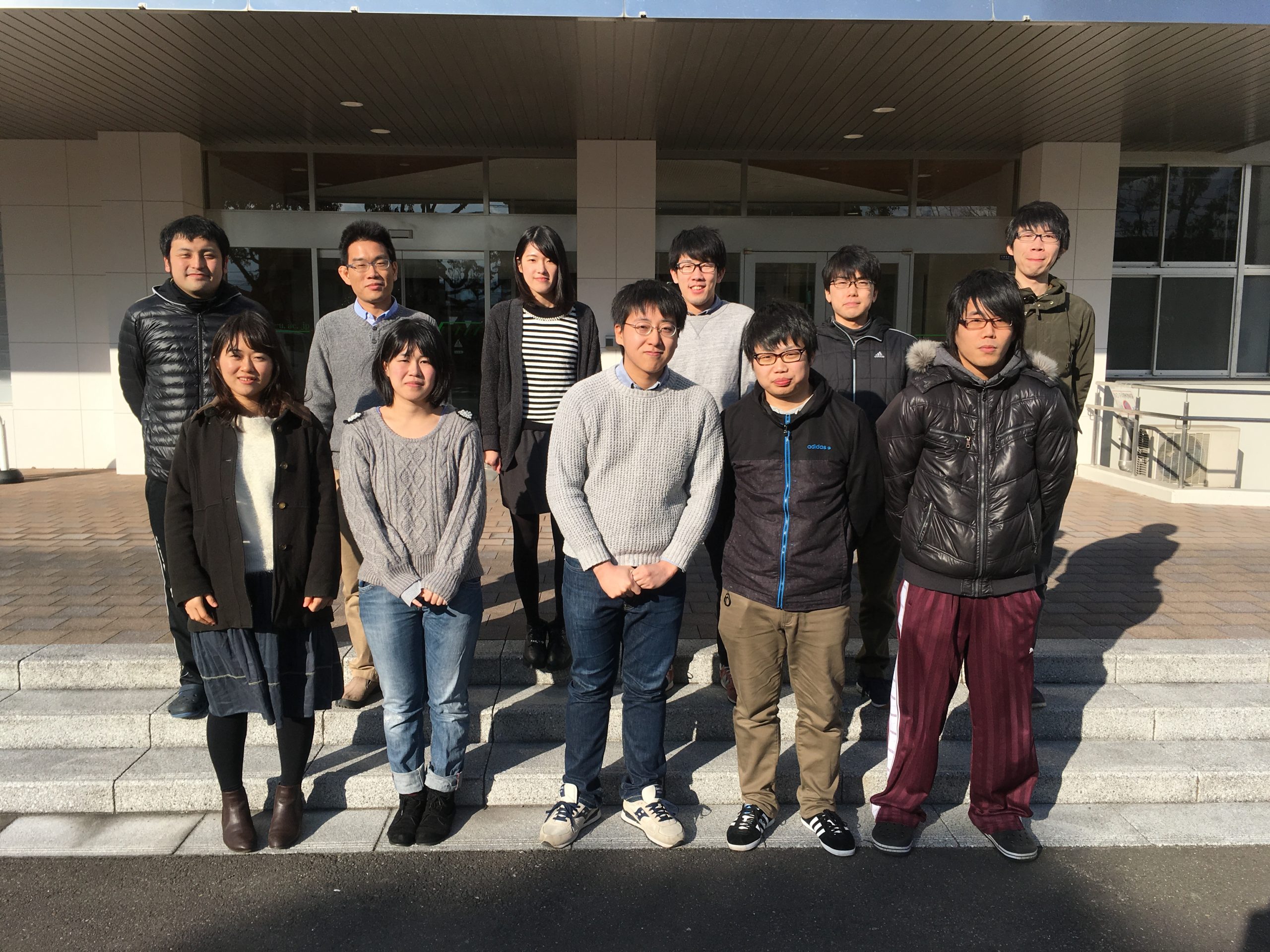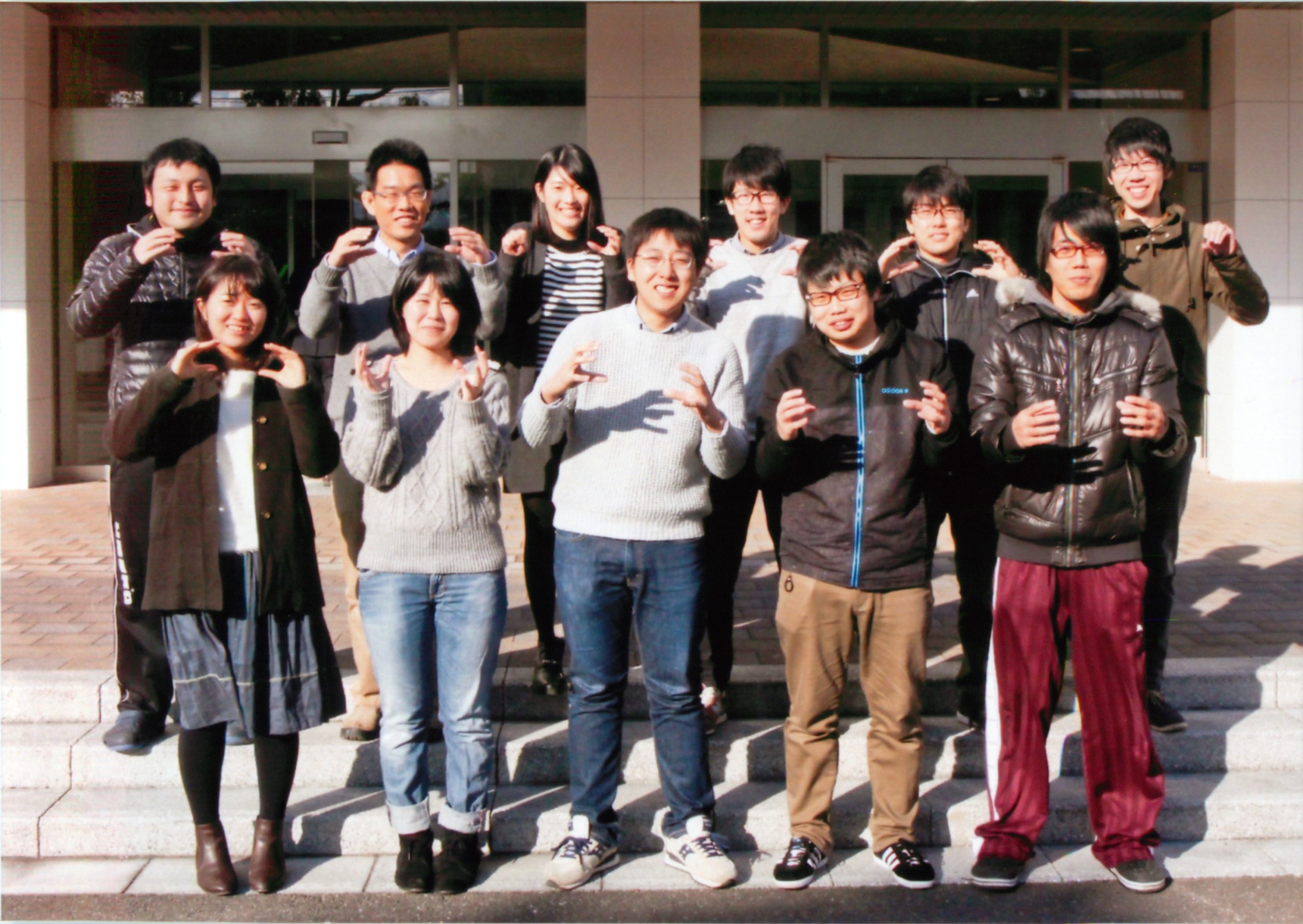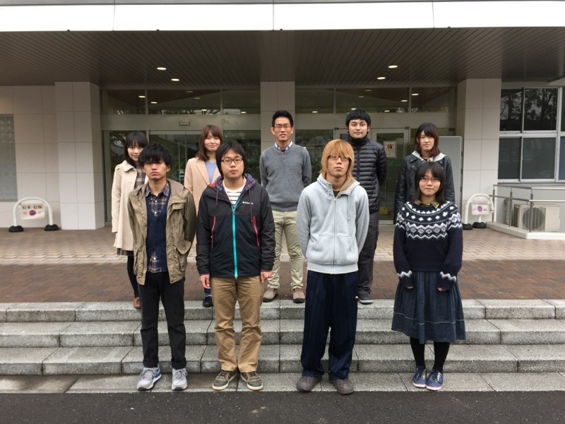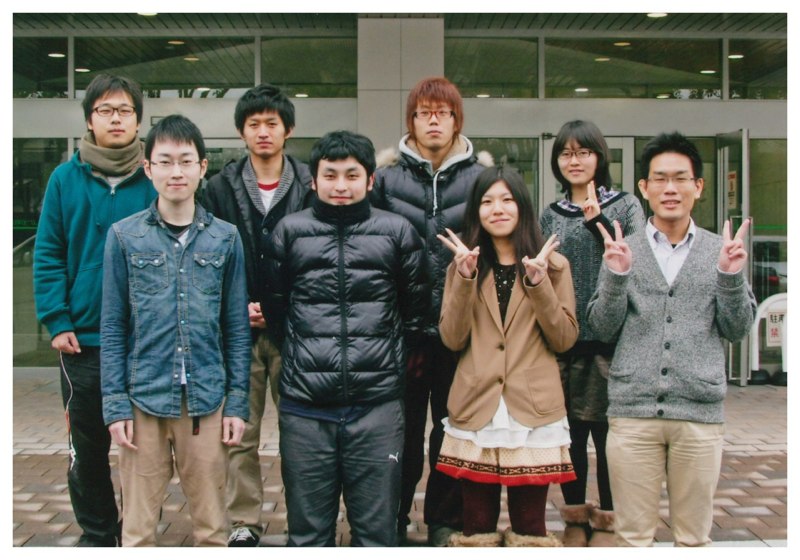 Back row (left to right): Tomoki WADA(B3), Satoshi HATANAKA (B3), Kano HONGAWA (B3), Ryo C. Yanagita. Front row (left to right): Kousuke YAMAMOTO (M2), Natsumi KITAGUCHI (M2), Sumika SADANO (B4), Mao OTANI (B4), Serika OTSUKI (B4), Yuki KANAGAWA (M2).