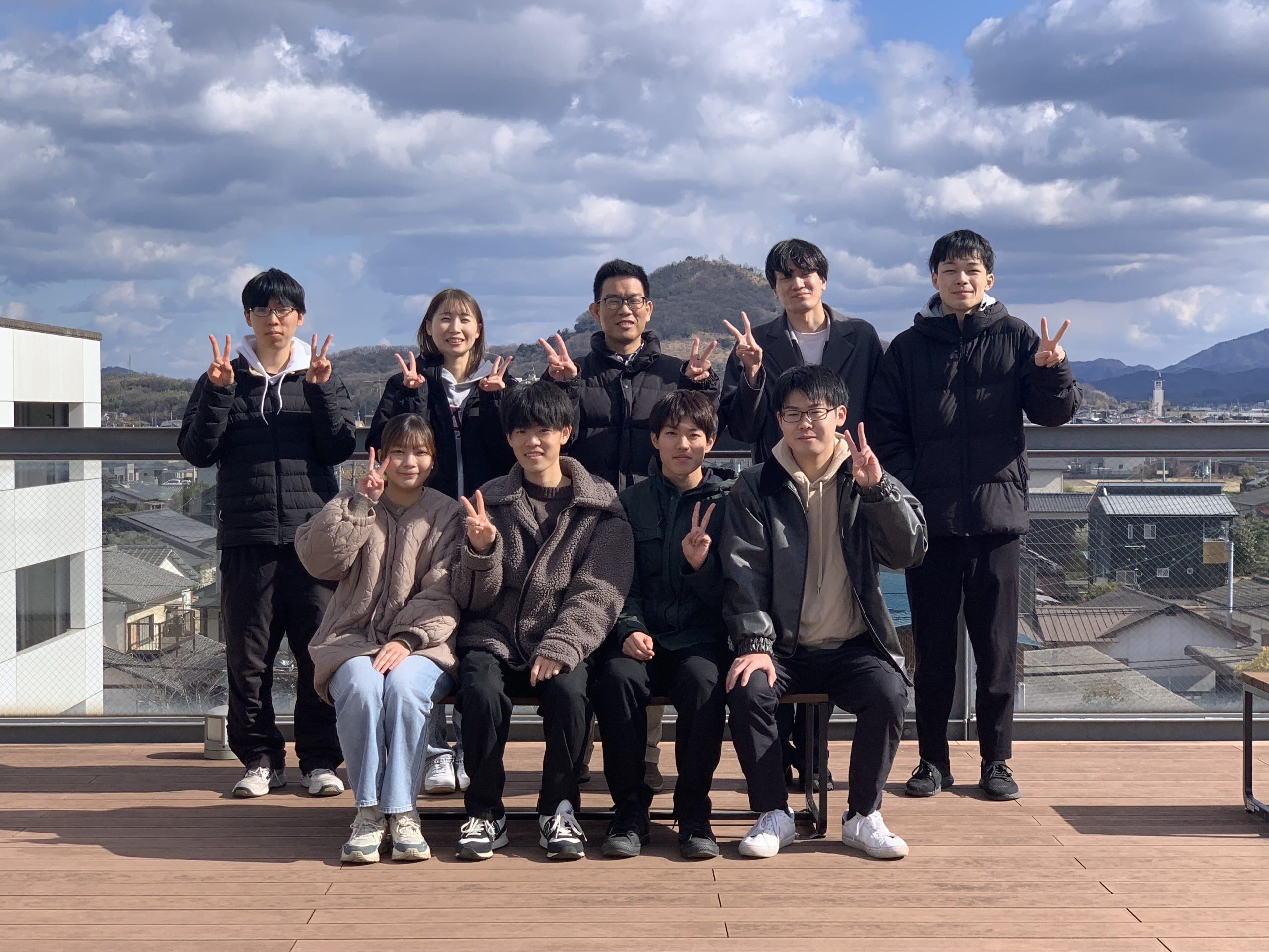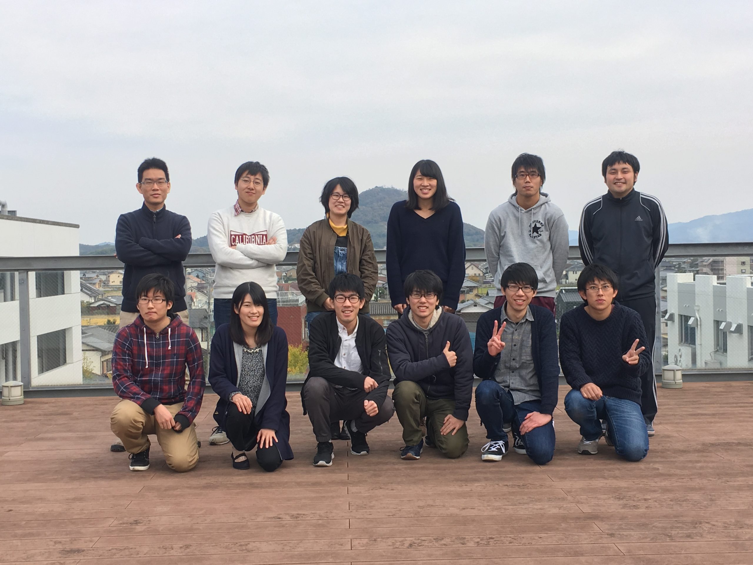 Back row (left to right): Yoshiki ASHIDA (D1), Ryo C. YANAGITA, Kazune TAKEMOTO (M1), Shogo KONO (B3), Takaharu YASUKAWA (B3), Shota MIYAKE (B3). Front row (left to right): Chise TAKAHASHI (M2), Sawako UEMATSU (B4), Daichi TOYONAGA (B4), Katsuki NAMBA (B4), Hironobu ISHIYAMA (M2).
