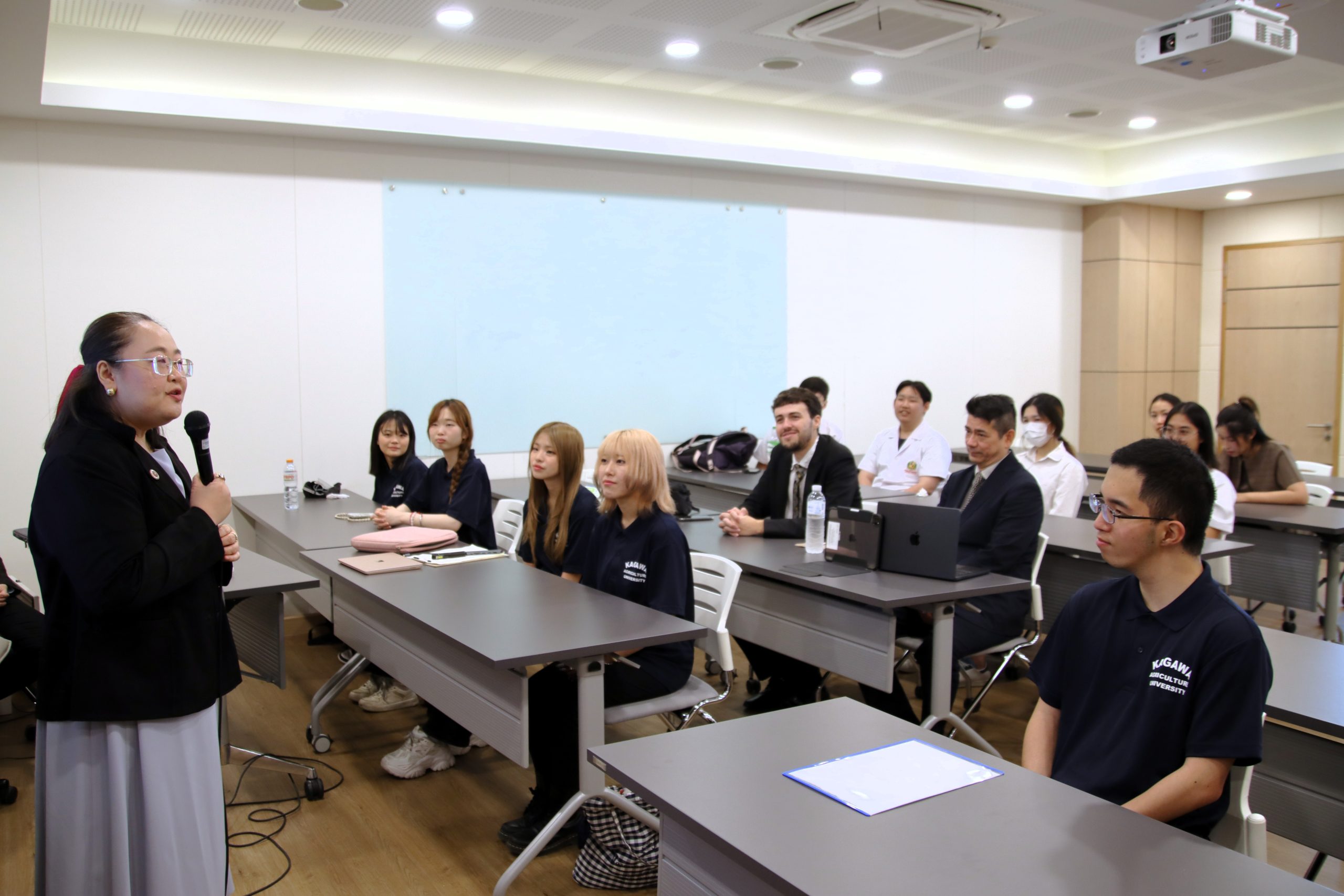 The ceremony concluded with a warm farewell between Kagawa University and Assumption University students, celebrating new friendships and shared experiences by exchanging gifts and SNS information. Four Thai students will come to our faculty for a two-month program next April, and our students are ready to give them the warmest welcome.