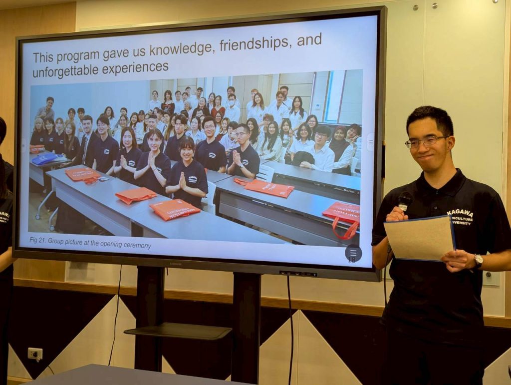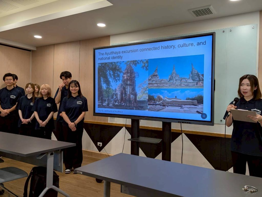 Students shared what they learned during the program through a 20-minute presentation in English covering Thai culture and language classes, laboratory experiments, and cultural tours. Their reports reflected both academic growth and deeper cross-cultural understanding developed over the course of the internship.