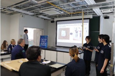 The workshop began with a presentation by three students from the Faculty of Agriculture, who introduced how to make Sanuki udon in English using slides. These students have previously demonstrated udon making overseas as part of the university’s international training programs, under the guidance of language instructors Professor Lutes and Lecturer Khalife.