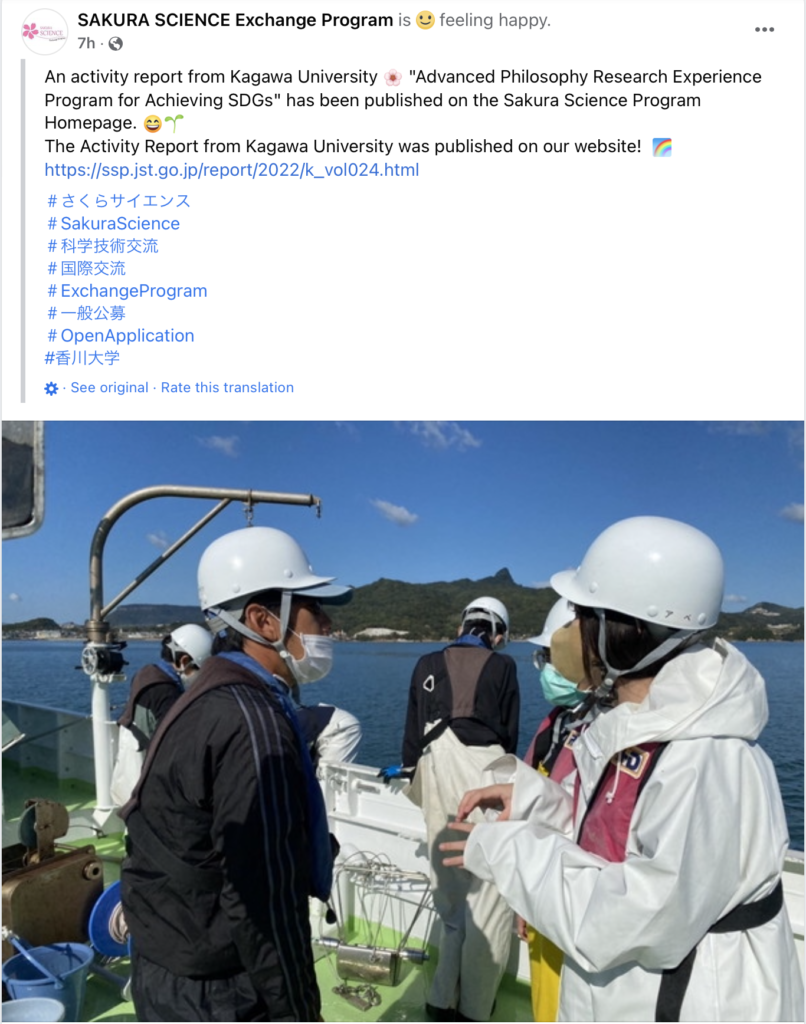 Sakura Science Exchange Program 2022Oct 23 – Oct 29Faculty of Agriculture, Kagawa University The Faculty of Agriculture will host eleven