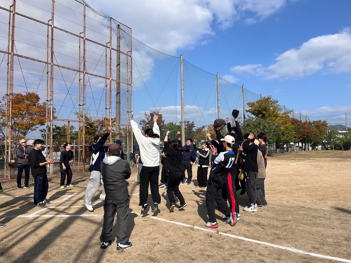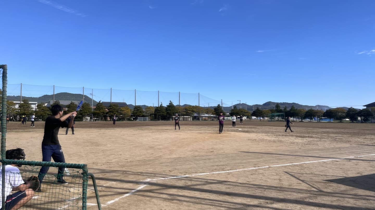 少し肌寒くもありましたが、快晴での開催となり、6チームが参加してくれました。連続して出場してくれている現役生と卒業生のチームや、初参戦のチームなどバラエティに富んでいました。ここ数年は毎年ハイレベルな試合をするチームが増えてきており、白熱した試合が多く見られ、楽しく観戦することができました。特に、今年はホームランが数多く放たれ、なかなかに見どころがある試合が多かったように思います。