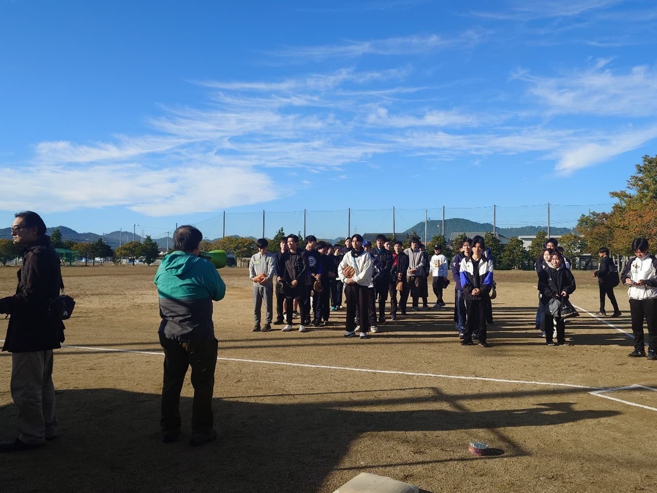 少し風が吹いておりましたが快晴での開催となり、5チームが参加してくれました。連続して出場してくれている現役生チーム、2年生を中心とした新チーム、卒業生チームなど様々なチームが参加してくれました。昨年に引き続きハイレベルな試合をするチームが増えてきており、今年は接戦の試合が多く見られ、非常に楽しく観戦することができました。特に、投手と野手が揃っており守備も堅いチームが多々見られ、守備でのファインプレーなどなかなかに見どころがある試合が多かったように思います。