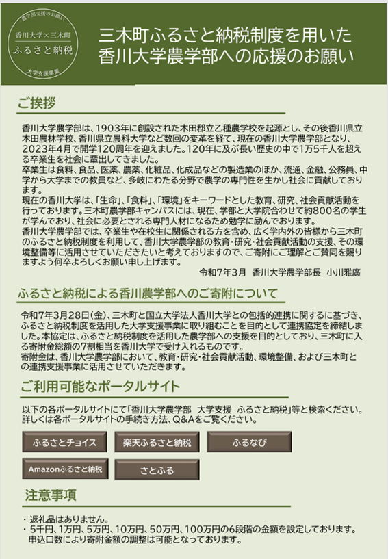 香川大学農学部にふるさと納税制度を利用して支援したい方へ