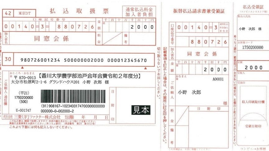(池戸会報に同封されたコンビニ兼用振込用紙のサンプル画)