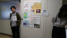 現在走らせている研究テーマの1つが、遺伝子の転写後調節に関係する結果に行き着きました。私の研究分野では、ウイルスに対する防御機構を除き、なかなか転写後調節関連の研究発表はなく、他分野の研究集会などに参加や発表して、積極的に意見を頂戴したり情報収集する必要を感じておりました。そこで毎年開催されている植物RNA研究ネットワークシンポジウムに参加しました。岩本くんにはポスター発表してもらい、どのような質問をもらうのか把握するため私もそばで控えます。