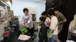 前日の台風襲来で香川県内の公共交通はかなり乱れましたが、オープンキャンパスが予定通り行われました。市村研究室はベンサミアナタバコのシリンジインフィルトレーション、GFPを発現させたベンサミアナ葉の観察、アガロースゲル電気泳動体験、以上の3本立てです。研究室メンバーに来場者の対応をお願いしました。また、実験体験だけでなく、大学生活や研究室生活なども、実験体験の合間や終わった後に話してもらいました。前日が大荒れの天気で来場者が少ないのではと心配になりましたが、市村研への来場者を見る限り、例年並みに感じました。来場者対応をしてくれたラボメンバーはお疲れさまでした。11月3日の収穫祭でもよろしくお願いします。小坂と森本の両名は男女共同参画企画の個別相談に出向して、高校生対応を頑張っていたようです。