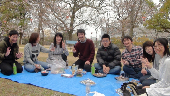 市村研も自動車持ちの学生が増えてきたので、学生さんの希望もあり丸亀城までお花見に出かけました。車で約1時間、途中で食料を確保して丸亀城へ着きました。満開後に出かけたかったのですが、今年の桜は遅く、しかも次の週は授業が始まる、しかも週の後半は雨の予報ということで、今週しかないという流れです。しかも、当初6日の予定でしたが、5日の時点で予報が午後から雨に、そのため急きょで5日水曜日となりました。