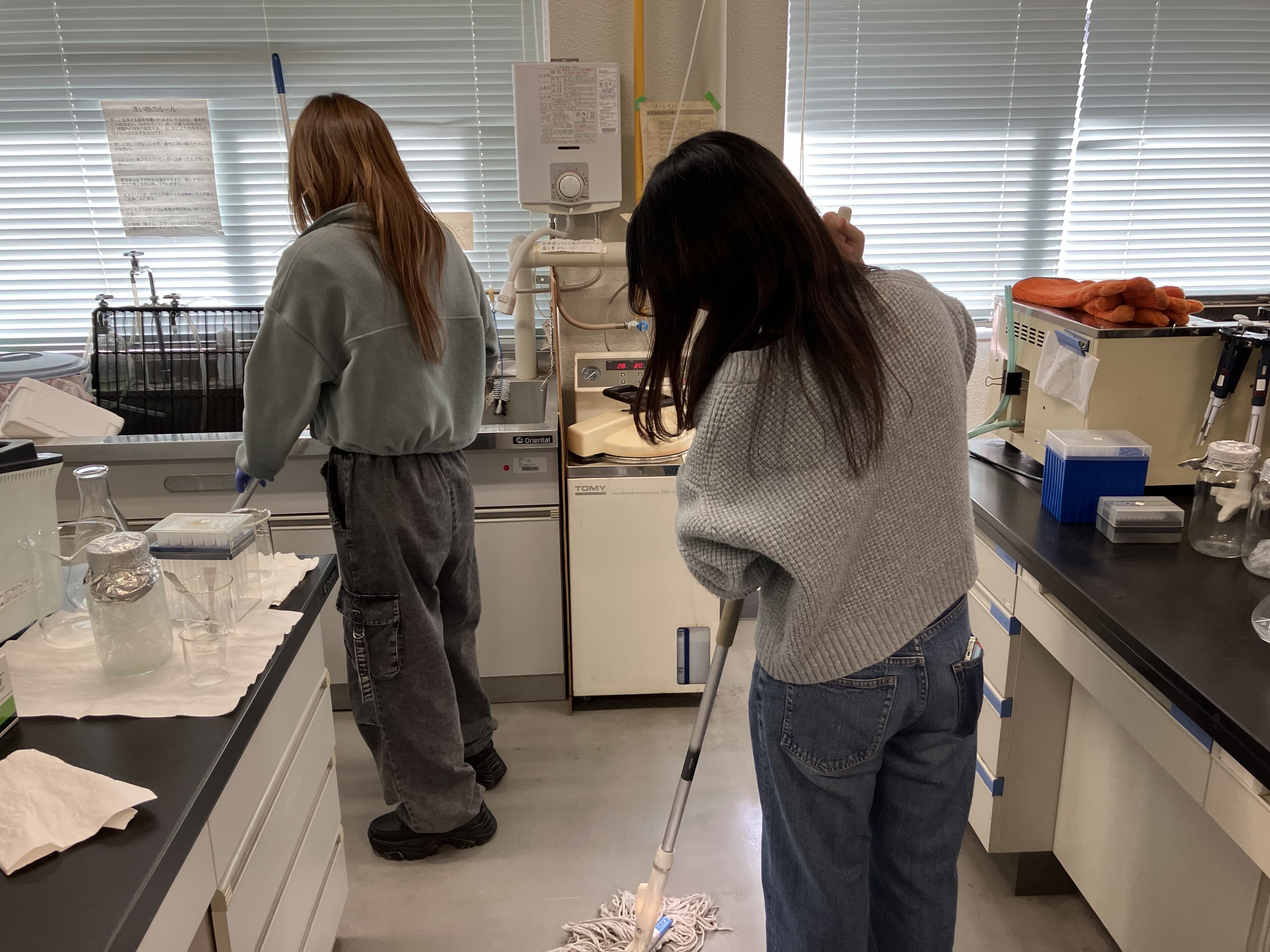 忘年会の翌日ではありましたが、研究室の大掃除を行いました。市村は部局運営業務などがあり、今年も掃除はできませんでした。学生主体の大掃除でしたが、受託に出すサンプルの調製があり、一部学生さんは実験を継続してもらいました。肝心の大掃除は特に浅田、杉本、有本、友寄、森の5人が頑張ってくれました。筋肉担当森くんのおかげで無事電動ブラシをかけられました。また、3年生は寒い中外窓の掃除をしてくれてありがとうございました。次回は市村を含めて全員参加で実施したいですね。