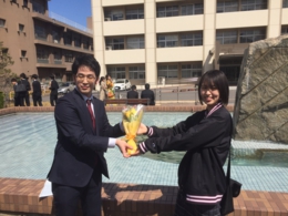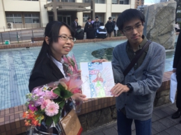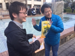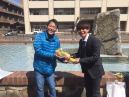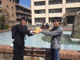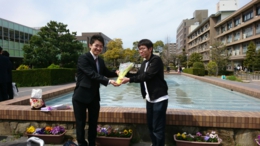 3月24日は香川大学の卒業式と大学院の修了式です。在校生の学生たちも先輩に花束と記念品を贈るため集合して別れを惜しんだり、談笑したりと最後の時間を過ごしました。快晴に恵まれて良かったですね。香川大を去る教え子たちには幸多かれと願います。お礼の品もありがとうございました。気が向いたら研究室に顔を見せに来て下さい。