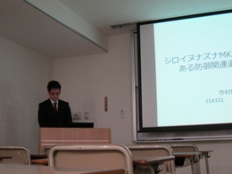 例年恒例2月末は、卒論発表会の時期です。当研究室も土屋、萩藤、横田の3名が発表しました。なぜなのか3人とも卒論に盛り込みたい実験結果が間に合うかギリギリのタイミングとなりました。3人とも直前まで発表練習を繰り返し行い完成度を高めつつも、実験も止めないでデータを発表に間に合わせようと頑張りました。結果、3人ともデータが間に合い、胸を張って発表することができたと思います。頑張る子が大好きな市村もうれしかったです(本当)。追いコンでは良いお酒が飲めたかな?と思います。お疲れ様でした。でも、卒論提出はまだなので、しめきりを睨んでまだまだ気が抜けない日がもうしばらく続きます。