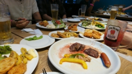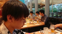 コース実験が終わり、最初の大学院入試も終わったということで、高松市内のビアガーデンに打ち上げということで研究室ででかけました。天候はあいにくの雨でしたが、庭の見える屋内で焼き肉をはじめお料理と飲み物を楽しみました。実験に、4年生は大学院入試にお疲れ様でした。次のイベントは8月のオープンキャンパスかな。