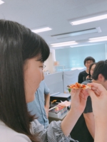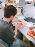 修了した濱野くんから始まったピザの伝統は森本くんに受け継がれ続いています。生地を持ってきてくれて研究室のオーブンレンジで焼いて、焼きたてを出してくれました。クリスピーでパリパリ、コース実験最終日の景気づけにぴったりでした。