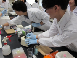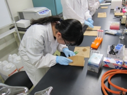 6月25日から27日まで市村研担当のコース実験を行いました。実験はシロイヌナズナに塩ストレス処理を行い、それによって発現するRD29A遺伝子由来の転写産物をRT-PCR法によって検出するという内容です。3日間の日程で行いました。1日目は塩ストレス処理とtotal RNAの調製、2日目が逆転写とPCR、3日目がPCR産物の電気泳動と結果のまとめ、総評です。1日目の実験ではRNA抽出の際に、有機溶媒を加えるとチューブの蓋がやや開きやすくなるようで、十分注意することが今回の教訓です。やはり個人によってはサンプルが入れ替わってしまう人やPCR産物が得られなかった人、バンドが薄い人などがいました。まあ、失敗した方が考察しやすいとも言えるので、前向きに捉えてほしいです。Actinの方はきちんとPCR産物が得られた学生が多かったですね。今年は応用生命コースに分属した学生が少なく、5人の班はありませんでした。準備や指導は比較的やりやすかったと思います。