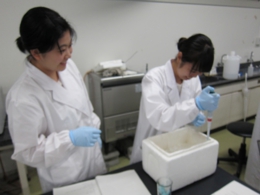 毎年お盆前の恒例イベント、香川大学農学部オープンキャンパスが実施されました。例年来場者数は約500人ですが、今回は800人前後ということで大幅増でした。市村研もじっくり体験コースで実験体験を行いました。今年は午前中の講演会で、OBの濱野さんが特別講演をされるというビッグニュースがあり、市村と土屋くんが聴講するため講演会会場に駆けつけました。在学中の研究室生活や卒論・修論研究のこと、就職後の業務について、これから受験を控えた高校生にわかりやすく平易な表現で語りかけていました。