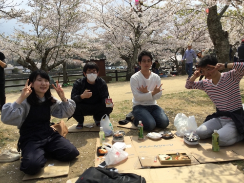 学会ウィークが終わって札幌から香川へ戻ってみると、もう桜が終わりかけ。何の打合せもしておりませんでしたが、今日しかチャンスはないということで、その日に研究室にいた学生さんに声をかけ、お弁当を買って、さぬき市の亀鶴公園へ急遽お花見ランチに出かけました。亀鶴公園は初めて行きましたが、池の中央に桜並木が突き出ていて何とも風光明媚です。なかなかの人出でしたが、場所の確保に困るほどではなく、田舎の良さをお弁当と一緒に味わえました。